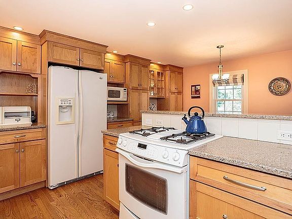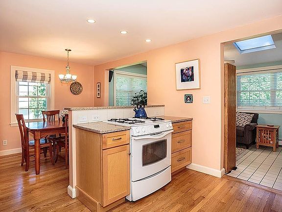 Stratton School 4 BR Cape on a beautifully landscaped 9,000 sq. ft. corner lot! Fireplace living room with built-in bookshelves, renovated open kitchen/dining area complete with granite counters, gas cooking and plenty of cabinet space for all of your kitchen gadgets! First floor family room with lots of natural sunlight leads to the deck and large yard, perfect for entertaining! Two bedrooms plus a full bath finish off the first floor. Two additional bedrooms and bathroom with shower are on the second floor. Beautiful hardwood floors throughout the house and many updates such as a newer roof and windows throughout. Plenty of off street parking and a one car garage with direct access to the home. This is the house, lot and location you have been looking for, don't miss out!