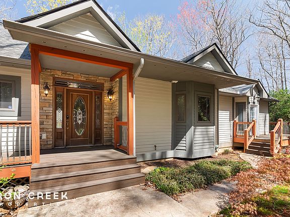 Discover the perfect blend of rustic charm and modern comfort in this magnificent 4BR/3.5BA Mountain Craftsman perched among the tranquil forests of Fairview, just south of Asheville. This woodland sanctuary welcomes you with warm wooden accents, soaring cathedral ceilings adorned with rich knotty pine, and walls of windows that frame breathtaking long-range mountain vistas. The heart of this mountain haven features a gourmet kitchen outfitted with sleek stainless appliances, including electric double wall oven, electric cooktop, French-door refrigerator, dishwasher, built-in microwave, and abundant craftsman-style cabinetry with ample counterspace for the culinary enthusiast. The main level showcases stunning hardwood floors that complement the natural wood trim and doors throughout, while the lower level offers cozy carpeting. Gather around the stone fireplace in the great room or enjoy a second natural gas fireplace downstairs for chilly mountain evenings. The primary suite delights with a luxurious bath featuring a deep soaking tub, while built-in bookshelves in the library create a perfect reading nook. Step outside to the expansive deck that spans the entire back of the home, offering panoramic views perfect for morning coffee or evening stargazing. Additional amenities include a washer and dryer, electric heat and A/C, two-car garage, and private well. Water (well) and sewer (septic) included - tenant pays all other utilities. This property is pet-friendly, up to two pets, with a $250 refundable deposit per pet. Sorry, this home does not accept co-signers. All Iron Creek Properties residents are automatically enrolled in the Resident Benefits Package (RBP) via Second Nature for $11.95/month, which provides liability insurance. This fee is waived if tenants provide evidence of private insurance to Second Nature. Additional upgrades to the RBP are also offered for an added monthly cost, including credit building to help boost the resident's credit score with timely rent payments, up to $1M Identity Theft Protection, a move-in concierge service making utility connection and home service setup a breeze during your move-in, a best-in-class resident rewards program, and on-demand pest control. Please ask our leasing staff for more details upon application!