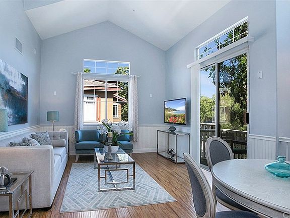 STYLISH AND APPEALING LADERA BEAUTY! Highly sought after 3 Bedroom home located within the desirable community of Chambray features a wonderfully open and unique floor plan. Soaring ceilings, stunning wide plank bamboo flooring, upgraded fixtures, recessed lighting, new berber carpeting in all bedrooms, ceiling fans and more! Upon entering the home you are welcomed by the cheerful colors, natural light. large windows and cathedral ceilings. The wood staircase leads you up to the amazing main level of this picture perfect home. The enormous great room charms you with beautiful wainscoting, lots of windows and open space. The highly upgraded kitchen featuring white cabinets, granite counters, breakfast bar and shiny stainless appliances. The living room slider leads you out to your own private balcony overlooking the community, hills and trees. Down the hallway you will find the luxurious master suite featuring an ensuite bathroom, dual sink vanity and huge walk-in closet.The additional full bathroom is located across from the 2nd bedroom. The third bedroom or bonus room is located upstairs on the third level with so much potential. Not only can it be a bedroom, but perfect for a playroom or even a man cave! The 1-car attached garage with direct access to the house has built in storage with an additional assigned parking spot only steps away from your incredible move-in ready home. SMART BUYER CERTIFIED HOME with all inspections/disclosures completed & Home warranty in place!