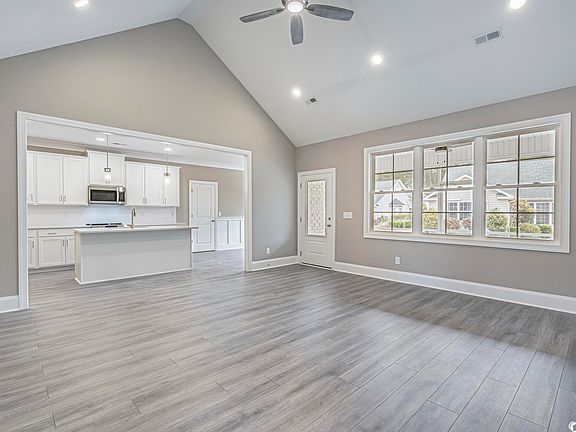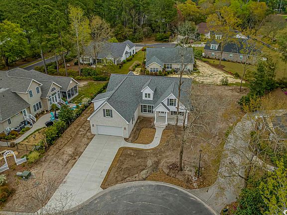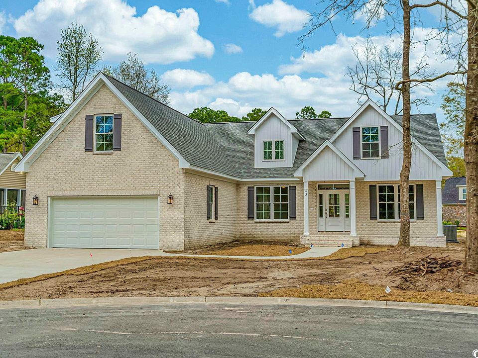 BRAND NEW! All brick, superior craftsmanship, elevated fit and finish, and located in the family-favorite community of Ricefields! Newly constructed home with a spacious & open floorplan with an inviting feel. A lovely entryway welcomes you; a perfectly placed home office/study is just off of the foyer. The oversized great room has a vaulted ceiling and opens onto a large screened porch that has a peek at Caledonia golf course. This living space flows nicely into the smartly-appointed kitchen with attractive quartz countertops, stylish subway tile backsplash, an entertaining height center island, lots of counter space, a generous pantry, and an upgraded stainless steel Frigidaire Gallery series appliance package. The dining room is nicely situated off of the kitchen with chair rail height wainscoting and a large picture window for a view of the back lawn and allowing for natural light to be yet another accent. The primary bedroom suite is sequestered on its own private wing of the home with a tray ceiling and master bath that is finished to perfection – custom tiled shower, garden tub, double sinks, enviable counter and cabinet space, and a fabulous walk-in closet! Two additional bedrooms share a bath on the main level. The back hallway leading to the second level has been ingeniously utilized as useful space with under-stair storage. Before heading upstairs, a family drop zone with a built-in storage bench and shelving, a well-equipped laundry room with smart cabinetry, and a utility sink and powder. The second floor has a private bedroom suite with a full bath. Throughout you will be delighted with the impressive moldings and durable, waterproof Pergo flooring. The home is located on a large homesite with a golf view, a large side yard, and low traffic street cul-de-sac just a short distance from neighborhood amenities. While the home and setting are nothing less than delightful, the community itself offers a unique amenity package making it quite sought after – friendly neighbors, sidewalks, a community pool, a riverwalk with a boat landing along the Waccamaw River and a preferred membership to Caledonia Golf Course is available. Welcome to Ricefields …A Great Place to Live!