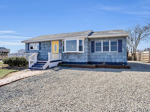 Exceptional tranquil location to enjoy captivating views of the Barnegat Bay from this 2 bedroom, 2 full bath Ranch on a 80x180 corner lot w/detached garage. Kitchen features vaulted ceiling with white cabinetry, Stainless Steel appliances, pantry, butcher block counter tops & a dining area with the most stunning view of the bay. There are 2 separate living areas, one w/water views, the other has sliders to a large deck. Master bedroom includes private full bath & there is a large laundry room/office offering 3rd bedroom potential. 3 ductless mini splits for heating & a/c. A front porch awaits to lounge the day away directly across from the bay. New roof currently being installed. Keep your boat around the corner at Good Luck Point Marina plus waterfront dining at Martell's Waters Edge.