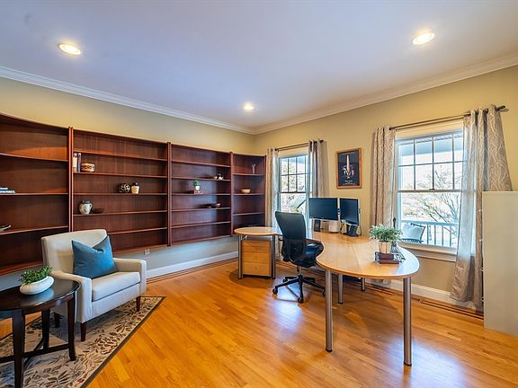 - Recessed Lighting, Crown Molding, Bathroom - Half, Countertops - Stone/Granite/Solid, Office, Bathroom, Walk-up Attic