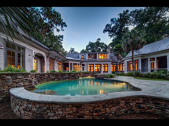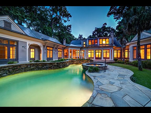 Located along the May River with breathtaking views of the marsh lands and river sits this gorgeous 6,235-square-foot home, designed with careful attention to detail to blend into the stunning surrounding environment. With clearly defined spaces for both owners and their guests, this residence is separated into three wings, creating privacy while also seamlessly flowing from room to room. As one of the largest homes in May River Forest with nearly 1.4 acres of land, future owners are offered a spacious gourmet kitchen with double islands, double ovens, Carrara marble countertops, a breakfast nook, separate dining room, side entry room, living room with fireplace, office, study and laundry room. Combined with a downstairs master retreat, upstairs junior master suite, unfinished room over the garage, and separate guest house with two additional bedrooms and full kitchen attached to a large screened-in porch with an outdoor kitchen, guests will enjoy just as much comfort in this spacious residence as the homeowners themselves. The master wing extends off the main living room, featuring a long hallway that opens to an elegant suite with vaulted ceilings, spa-like bathroom with tub, shower, double vanity, custom built-in cabinets, massive walk-in closet, and private screened-in porch. The entire design of this five bedroom, six bathroom (and two half bathroom) house is centrally focused on framing the gorgeous views of the May River. A large saltwater pool also overlooks the natural beauty of the river and marsh, offering a fabulous location to enjoy and entertain in this exceptional Lowcountry residence. Additional notable features include the three car garage, exercise room, cedar closet, movie theatre, space for an elevator, central vacuum system, and audio/visual system that extends throughout the entire downstairs of the home. Palmetto Bluff is situated in the Lowcountry of South Carolina between Charleston and Savannah, Georgia, Palmetto Bluff is the largest remaining waterfront property on the East Coast and part of the Crescent Communities residential real estate portfolio. Currently evolving as a residential community and conservation preserve, the 20,000-acre development is surrounded by 32 miles of riverfront and features extensive nature trails; a vibrant Village center complete with river access, boat storage and canoe club; a distinctive food and beverage program; the AAA Five Diamond Inn at Palmetto Bluff; and a Jack Nicklaus Signature Golf Course. An array of southern-style residential neighborhoods ranging from multi-million dollar legacy family compounds to more traditionally sized, single-family lots are currently available. For more about Palmetto Bluff, please visit www.palmettobluff.com.