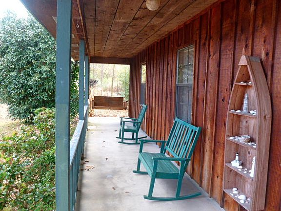Very unique & private property on 9.6 ac. Very open den, kitchen & dining area. Wonderful screen porch covers entire back of house. This home is in excellent condition & has had some updating. There are 2 cabins on property. One has water & elec. and the other is primitive w/no utilities. Price determined giving no value for cabins although both are great.Cabins sold as is.Taxes est.w/homestead
