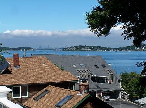 Strawberry Hill Colonial offering beautiful views of the Bay and Boston Skyline and not in a flood zone! New in 2007, this four bedroom, 2.5 bath home offers hardwood floors, crown moldings, large master suite with soaking tub & walk-in closet, central air & 2 car garage. Spacious kitchen with Oxbridge Maple cabinets, granite counters, stainless appliances and sliders to deck. Ready to finish walk-out basement with high ceilings, slider to rear yard and access to garage. Walk to A St. Marina, Bay and Nantasket Beach