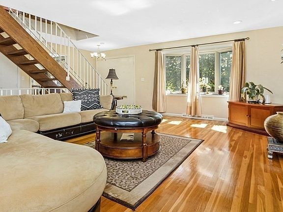Bright, spacious, and modern, this large condo feels like a single family home: everything is separate, including the double-door entry, the large deck in the back, the private front garden and back yard, the garage under the home with direct access. It features 3 large bedrooms, 3-full and 1-half bathrooms, formal dining room, large eat-in kitchen with granite tops and stainless steel appliances. It has hardwood floors throughout, laundry on main floor, en-suite bathroom for the main bedroom, ample storage and many closets. Add to that the large family-room/in-laws/au-pair apartment with private bath located on the lower floor, the central a/c, the open-floor concept, and the move-in condition, this home has it all! Great location in the center of Chestnut Hill, close to the shops and restaurants at The Street, easy access to the Longwood Medical Areas, to parks, schools, and public transportation.