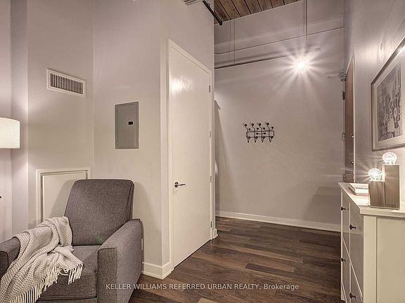 The historic Toy Factory Lofts is one of the most sought after and exclusive hard loft communities in Toronto. Unit 112 is a beautiful 1 bedroom plus den with rustic exposed brickwork, soaring 13 foot ceilings, exposed fur wood and steel beams, and all of the inspiring character you could imagine from true loft living. Situated on the main floor, you have quick and easy access to the gated courtyards and exits, the main floor units on this side are elevated up from the street level so you are hovering above head-height to the sidewalk and Overlooking East Liberty Street. Lush vines frame the exterior of the massive windows for a surprisingly sunny and green backdrop to your life at home. Toy Factory is equipped with a stunning balance of historic charm and high end modern amenities, from your meeting room, to the gym, the main lobby, the rooftop patio, and the central atrium you'll get to enjoy every time you return home. Make this one yours before it's too late.
