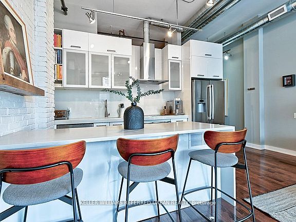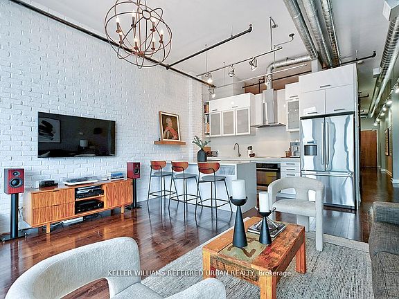 The Toy Factory Loft Where Style Meets Substance You've done your research. You know that only the best lofts hold their value. This is one of them. Welcome to Liberty Villages most coveted address: The Toy Factory Lofts an iconic building renowned for its rich character, enduring quality, and low maintenance fees. Even the curated artwork throughout the common areas hints at the design pedigree that makes this property a cut above. This rare 2-bedroom, 2-bath loft spans 1,171 sq ft (1,100 interior + 71 balcony) with soaring 12-ft ceilings and a seamless layout that flows naturally from open living spaces to a private balcony complete with rare BBQ privileges, ideal for entertaining or unwinding in style. At the centre is a gourmet kitchen anchored by a 7.5-ft Caesarstone island, paired with custom cabinetry, designer finishes, and a premium appliance package (36" Bosch fridge, Bosch dishwasher, Electrolux cooktop + oven). Upgrades throughout include Riobel faucets, barn doors, California Closets, automated blinds, and handpicked Farrow & Ball paint selections. The Toy Factory isn't just about design its about reputation. As the premier loft conversion in downtown Toronto, it offers residents quality amenities, unmatched convenience, and a community that values style and substance. This isn't just a loft. It's a landmark. It's a lifestyle.