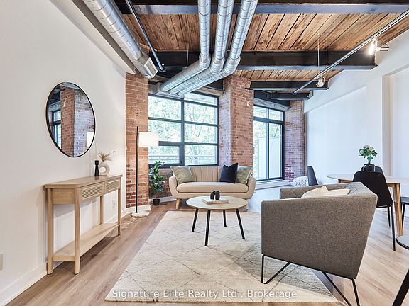 Authentic Loft Living in Toy Factory Lofts In Vibrant Liberty Village! Experience the best of city living in this rare, 1,100 sq. ft. authentic hard loft, set in the prestigious Toy Factory Lofts - One of Toronto's most coveted and well-managed loft residences. This building is celebrated for its rich history, exceptional upkeep, and unmatched community vibe, making it a standout choice for both end-users and investors seeking strong long-term value. The true loft layout delivers everything that makes this style so desirable: soaring ceilings, original brick and beam construction, expansive warehouse-style windows, and open-concept flow that creates incredible volume and light. A generous living and dining space connects seamlessly to a private terrace - perfect for morning coffee or evening entertaining. The large primary suite is tucked away for privacy, with custom built-in storage and a sleek ensuite bath, while a spacious enclosed den offers versatility as a second bedroom, home office, or creative studio. This unit also includes parking and a locker, combining authentic character with everyday practicality. Set in the heart of vibrant Liberty Village, you're surrounded by everything that defines Toronto's west end lifestyle - steps to cafés, restaurants, Metro, Starbucks, Balzac's Coffee Roasters, LCBO, boutique fitness studios, and the Exhibition GO Station, with TTC and the Gardiner Expressway just moments away. This is an A+++ location with unmatched walkability, connectivity, and energy. Units of this size and calibre rarely become available. Authentic loft, iconic building, unbeatable location - this is your chance to secure a true standout property in one of Toronto's most sought-after neighbourhoods.