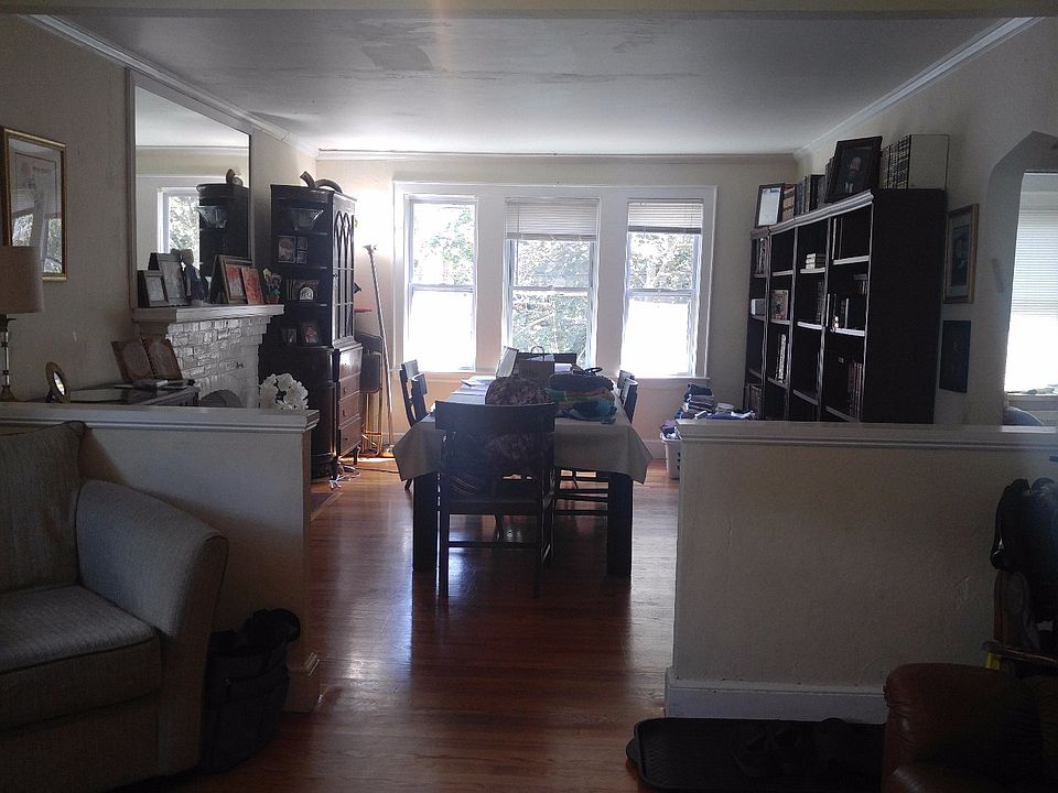 2 floors, 3 bedrooms unit in a brick 2 family house (3 bedrooms on 2nd floor and 2 rooms on third floor one of which is a bedroom with a closet) 2 full baths (one per floor) dishwasher garbage disposable washer and dryer in unit full eat in kitchen recently redone large dining room and separate large living room space hardwood floors decorative fireplace back porch/balcony backyard parking space available One block from bus and stores/cleaners/restaurants walking distance to Brighton Center Three blocks from T