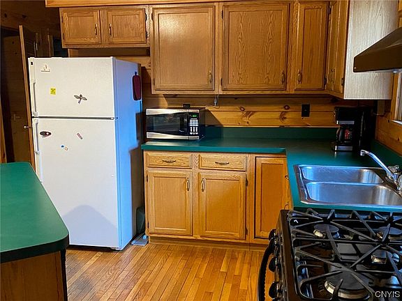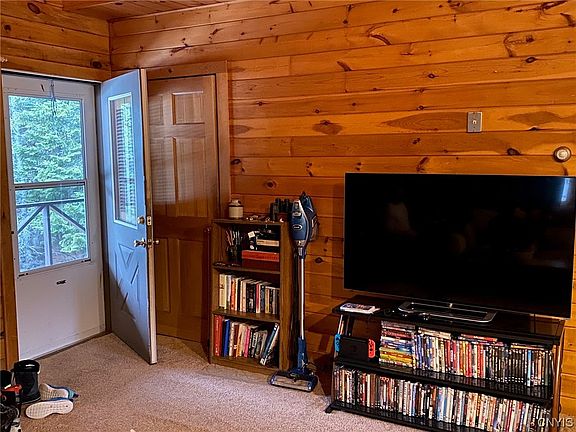 This log home sits on a beautiful lot with a lot of privacy and wooded views. The road is a dead end. There are two bedrooms and 1 bath on the main level and downstairs, another bonus room and bath with shower. The cathedral ceilings in the living room give a good feeling of volume. the 300 sq. ft. covered porch is a great place to enjoy the woods during the summer months. There are hardwoods in the living room and hallway. A 24' X 24' garage gives room to store cars and boats and there is some storage on the upper level.