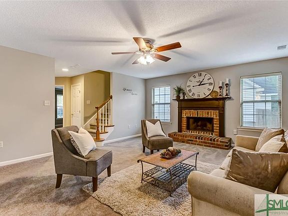 A MUST SEE! Located on a quiet cul-de-sac lot, this beautiful 4-sided brick home offers a large formal dining room and inviting living room complete with soaring ceilings and a cozy fireplace. The dine-in kitchen features stainless steel appliances and plenty of counter and cabinet space for ample storage. A lovely tray ceiling can be found in the master suite as well as a generous walk-in closet and luxury bath complete with desired double vanity, jetted tub, and separate shower. HVAC is less than one year old offering energy efficiency and zone controls with a 10 year warranty! Brand new carpet throughout! Enjoy the cool fall weather from your backyard patio or take advantage of Legacy Square's neighborhood amenities including a community pool, tennis courts, and much more! Conveniently located near restaurants and shopping. Less than 20 minutes to Hunter AAF and approx. 45 minutes to Ft. Stewart. Just a short drive to Pooler and historic downtown Savannah!