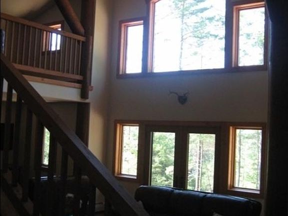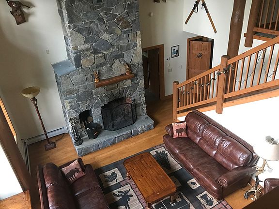 Great room with 20 foot vaulted beam ceiling and fieldstone fireplace. Loft over great room with 2 extra twin beds Included: heat up to 160 gals. propane, electric, extended standard cable and wifi. Snow plowing and front entry shoveling per each +3" snowfall event. Renter responsible for trash removal to Thornton transfer station, linens, firewood, extra plowing /sanding. heat in excess of 160 gal per 30 day rental period.