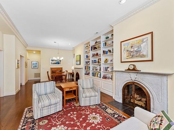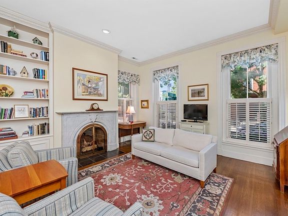 Situated in a distinguished brick building just off Monument Square, this corner exposure 2+BD/2BA, 1717 sf duplex offers historic charm, modern amenities and a winning layout. Step inside the elegant “Great Room”, a dramatic space w/oversized windows, two marble mantels (one w/gas fireplace) soaring ceilings w/crown molding, custom built-ins & walnut-stained hardwood floors. This impressive room can accommodate both living room and formal dining room furnishings. Off this space find the newly renovated kitchen w/white cabinetry, granite countertops + ss appliances. The primary bedroom, located at the rear for privacy, offers floor-to-ceiling custom closets + full bath w/marble accents & double vanity. The lower level comprises of a family room w/gas fireplace flanked by custom built-ins, ample 2nd bedroom, the “plus” room and a spacious full bath w/soaking tub. Central air, in-unit washer/dryer, common roof deck direct skyline views + additional storage.