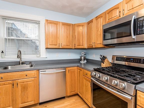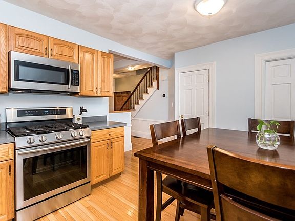 Sparkling townhouse in highly desirable South neighborhood. Oversized and well-maintained 2 bedroom condo unit. Spacious & open floor plan greets you with large living room & gleaming HW floors. This area opens into a bright eat-in kitchen with oak cabinetry. All 2018 stainless steel appliances & w/d. Newer Ecobee phone-integrated thermostat. Access to the sizable back deck, perfect for entertaining, overlooking a flat fenced back yard with beautiful landscaping. Half bath is just off the kitchen. Large master bedroom with 2 closets, HW floors & ceiling fan. Big second bedroom with built-in shelving and ample closet space. Finished 3rd level features a wonderful space for game room, home office or potential additional bedroom. Laundry in unit. Interior access to full basement. Close to restaurants, shopping & universities. 5 minute walk to T station. Easy access to 95 and Pike. Overlooking Gilmore playground. Working from home? This is your reasonable oasis in the middle of everything!