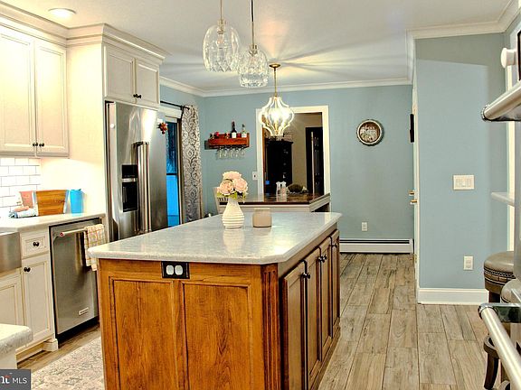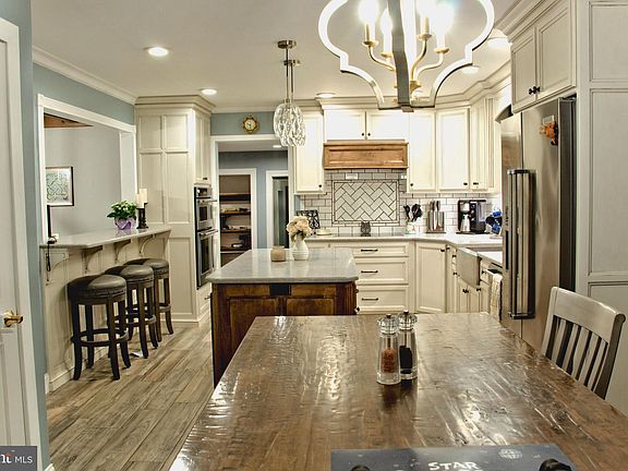 Don’t delay in seeing this spacious and updated home. The kitchen was fully renovated in 2020, with porcelain floor tiles, custom built cabinets, granite countertops, ceramic back-splash, large island, an induction range top, wall oven and built-in microwave/convection oven. Appliances are stainless and include dishwasher and garbage disposal. The refrigerator with, in the door, ice and water dispensers stay with the property. While the kitchen has a large eat-in space there is also a separate dining room with a wide pass-through to the kitchen. Upstairs the flooring has been upgraded with a wood laminate flooring on the landing, the main bedroom as well as the other two bedrooms. A shared full bathroom is on the second floor. The main bedroom is spacious and has two closets, one is walk-in, and an en suite full bathroom. There is lots of closet space and an unbelievable amount of storage space throughout the home. In addition to the main entrance there is a side entrance that is convenient to the driveway and has been newly tiled. For those days with less-than-ideal weather there is another entrance to the living space from the attached garage. Between the garage and side entrance is a convenient and large laundry. The large front load washer and dryer will remain with the property. As an added feature the washing machine sits on a washing pedestal for small loads. Off the living room you will find a large den with windows that bring in plenty of sunlight. In addition, there is a covered porch/ three season room that leads out to a concrete patio with a canvas gazebo that will also stay with the property. The home also features a fully finished basement that spans the full length of the house and provides ample activity space. A new water heater was installed in 2022 to replace the summer/winter water heating and save on annual energy costs. The extended garage fits two cars and still has extensive space available. Easy turnpike access to Allentown or Philadelphia. Note: sqft in public record does not include the finished basement.