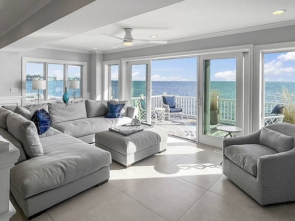Direct Waterfront - Long Island Sound | Available December 1st Enjoy breathtaking sunrises and sunsets from this custom direct waterfront home overlooking Long Island Sound. From the moment you open the front door, you are greeted with stunning water views and a bright, open floor plan. The chef's kitchen features top-of-the-line GE Monogram stainless steel appliances, granite countertops, and an expansive center island with seating for six. Flow seamlessly into the dining area and spacious living room, highlighted by a HeatGlo gas fireplace and double sliders that open to a Trex deck-perfect for entertaining or simply relaxing while taking in the panoramic views. Upstairs, the waterfront views continue, providing a serene retreat. This home combines luxury and comfort, offering the ultimate coastal lifestyle. Air Conditioning, All Utilities, Common Area Maintenance, Credit Check, Electricity, Exterior Maintenance, Hot Water, Insurance, Liability Insurance, Maintenance/Repairs, Mechanicals, Snow Removal, Water.2 Months 1ST AND LAST MONTH.