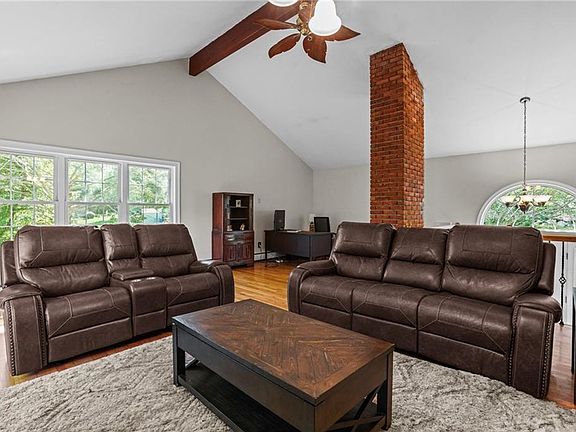 Presenting a turnkey raised ranch sited on a beautiful one-acre lot in Cumberland. The home's main level features large living spaces infused with natural sunlight and accentuated by vaulted ceilings. The kitchen is outfitted with granite countertops, stainless appliances and a center-island, with a slider opening out to a large deck for easy indoor/outdoor entertaining. An exposed brick chimney and a decorative wood beam add character to the living room, featuring a second slider opening out to the deck and wooded landscape. Downstairs, you'll find three bedrooms including the primary suite with its own sitting area, a fully updated bathroom and a third slider leading out to the expansive backyard. Important updates include a new heating system and updated windows, sliders, roof & septic system. Amenities include a two-car garage and in-ground sprinklers. If you're looking for a move-in ready home that offers privacy and a great location - this is the one!