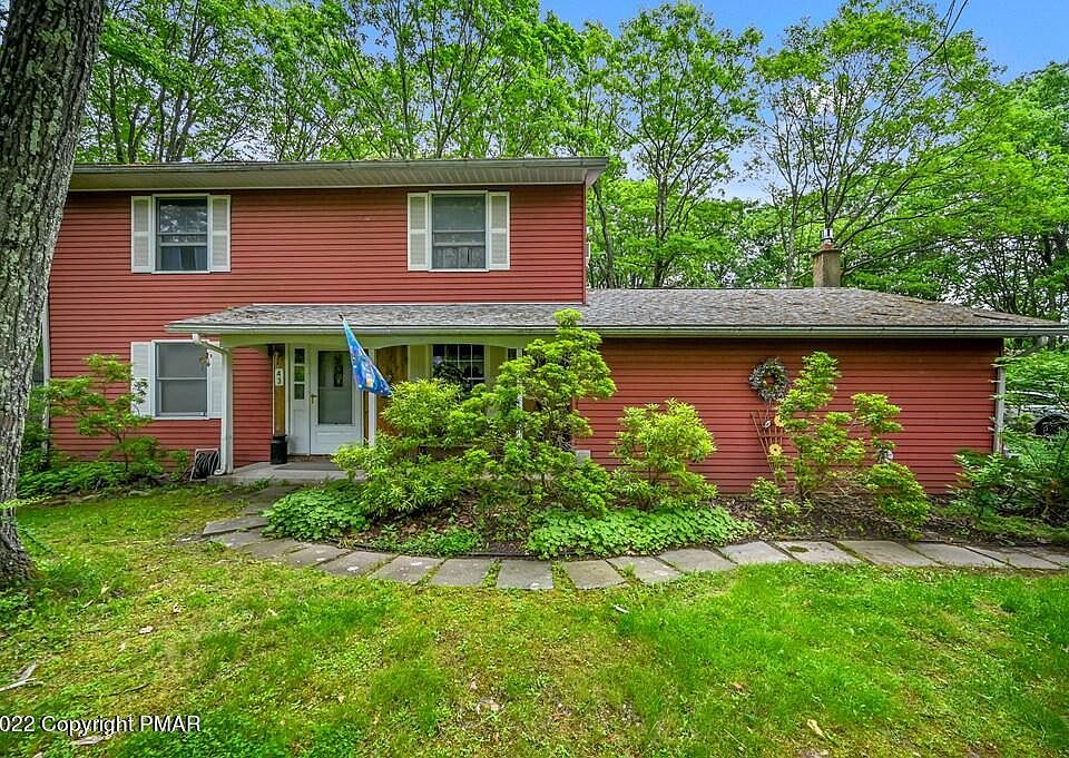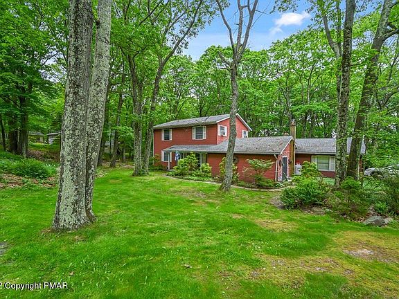 PERFECT LOCATION! PERFECT HOUSE! PERFECT PRIVATE BACK YARD! As you enter the home, you realize THIS IS IT! Foyer opens to the right side dining room, then full eat in kitchen, to the left, the staircase, lovely living room, and a full bath tucked away in the corner - what a nice surprise! Beyond the kitchen is a great family room with a unique stone wall, and propane stove that surrounds you with warmth! There is a large bedroom with french doors as a guest room or inlaw suite. The covered back deck introduces you to the garage on one side, a great deck on the other side, and finally...the fabulous private back yard, beyond the yard is a large portion of Pocono Heritage Land Trust for your exploring pleasure! Low taxes, most convenient location, WHAT ELSE DO YOU NEED?