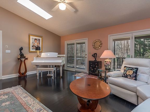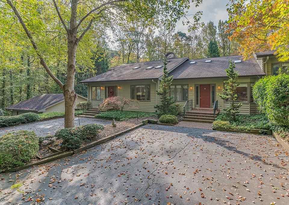 There is nothing else like this double unit in Hunting Country Trails! It even includes a 2 car detached garage. Located at the very end of the community, this very tasteful and well maintained home provides total privacy. Beautiful custom floors, high ceilings and tons of natural light make this one owner home a true gem. The floorplan offers many options for your living spaces, perfect for entertaining or visiting with friends and family. Three of the 5 bedrooms have ensuite baths, with a living room, den/study, bar and art studio. Plenty of storage too, and a propane powered generator. Covered deck and large patio look out over the natural setting, including the FETA trail system. The home could be separated into two units should the new buyer desire to. Only minutes from downtown Tryon or Landrum.