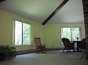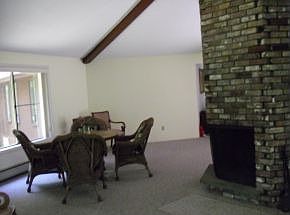 This unique contemporary 3+ bedroom home located in the desirable neighborhood of James Farm, situated on 1.82 acres, tucked away from the road, surrounded by lush greens and wildlife. This home offers one floor living, updated bathroom vanities & tops. This open concept floor plan includes vaulted ceilings and a center chimney making this cozy home great for entertaining. Lower level opens into the backyard, providing great additional space with many options, lower level offers a bonus room, 1/2 bath, laundry and an entertainment room with a fireplace. Great location and Great Price!!!