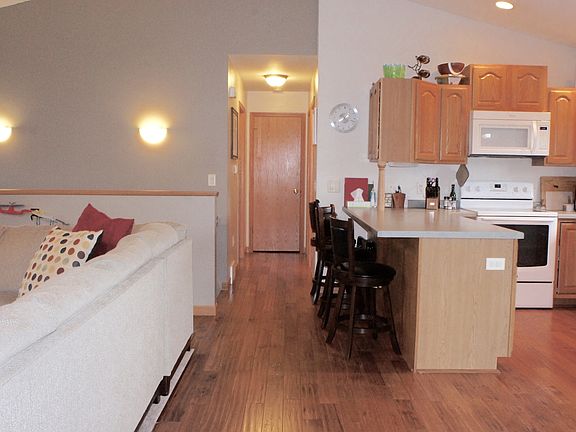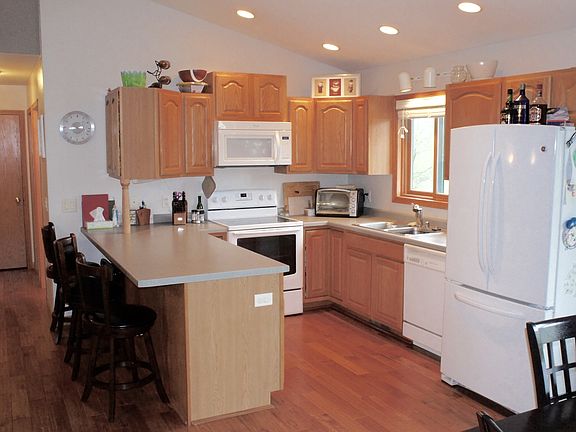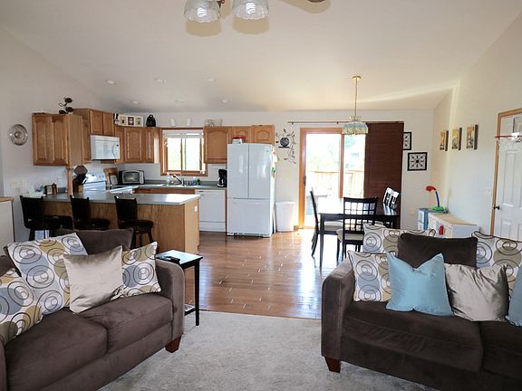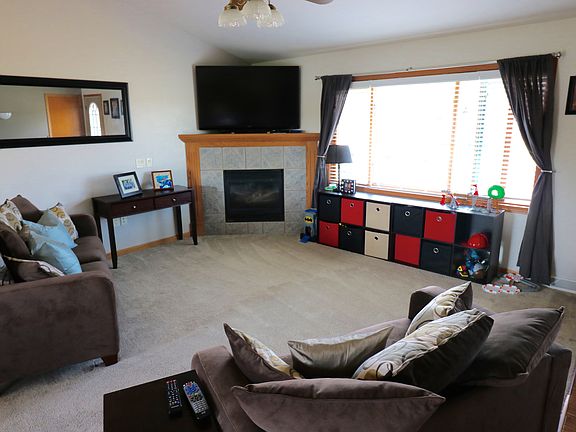 Open concept living space, kitchen and dinning, nice vaulted ceiling and fireplace in living room area, updated bathroom and floors ,finished basement with a 4th bedroom, full bath and walk out basement to the nice private fenced in yard.