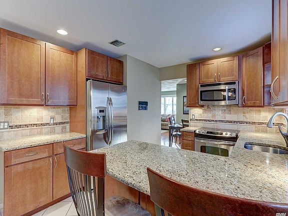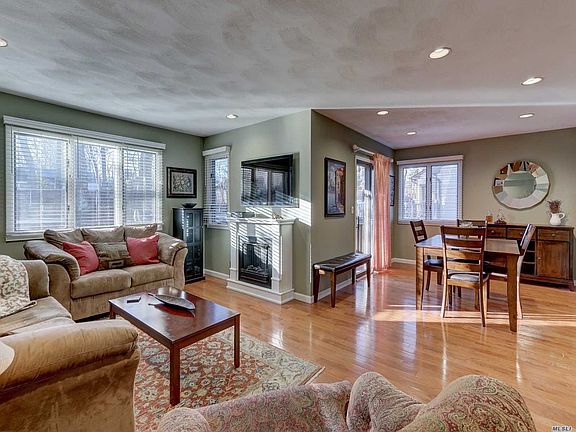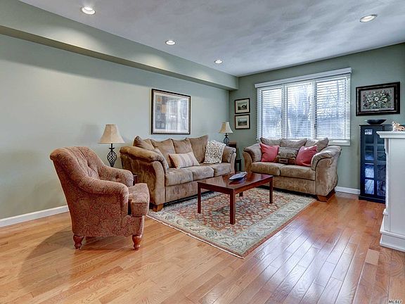 Clean and bright end unit in The Woods at Smithtown, 3 beds, 2 full and 2 half baths. Updated EIK, LR & DR with hardwood floors. Finished lower level with 1/2 bath and laundry. Large master suite with FB, deck, office and master closet. Intercom, surround sound and security system. Lots of parking. Club house with pool and tennis. Buy now and sit poolside this summer while HOA maintains your property!!!