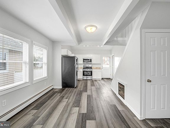 Welcome home to this newly renovated 2 story cape-style home in Hamilton! An oversized, covered front porch serves as the perfect place to unwind after a long day. As you enter through the front door of this home, you will captivated by the gorgeous vinyl flooring and the open-concept first floor. A spacious living room/dining combo boasts plenty of windows for bountiful natural light, the attention to detail is truly remarkable. The dining room leads into the open concept kitchen with brand new GE stainless steel appliances, crisp white cabinetry and a Formica countertop with a marble-esque appearance. The main level also offers 2 full bedrooms as well as a full bathroom with tub/shower combo. There is a built-in electric fireplace in the stairs that lead upstairs, along with a convenient coat closet and a hall linen closet. Head upstairs to two more spacious rooms, that could serve as ideal bedroom space or a home office with endless possibilities. The partially finished basement has washer/dryer hookups (none installed currently) and also provides you with access to the HVAC system. The possibilities of the basement are vast, the space could easily be fully finished as a game room, office or bar area. Head out the back door from the kitchen to the spacious back deck that overlooks the nicely sized backyard that is partially fenced with a white privacy fence. The elongated gravel driveway to the left of the home leads to the 1 car garage. This home is just waiting for its new owners to make it their own, located on a quiet street that makes for the perfect place for any family or a first time buyer. Schedule your private showing before its gone!