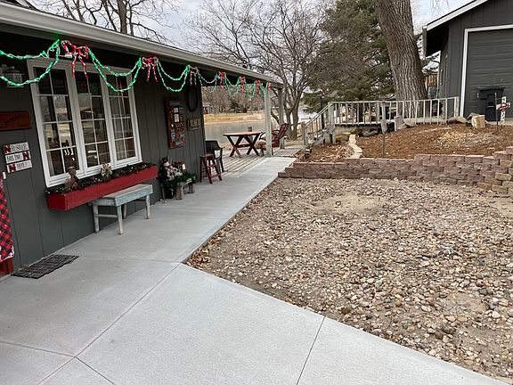 Lakefront living. Cute two bedroom, one bath, on the edge of Kuester Lake. The exterior was painted in 2021 and new landscaping improvements in the past 2 years. The sunroom overlooks the lake with large windows and has a hot tub to enjoy the view of the lake. Spacious 3 car detached garage.