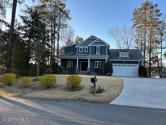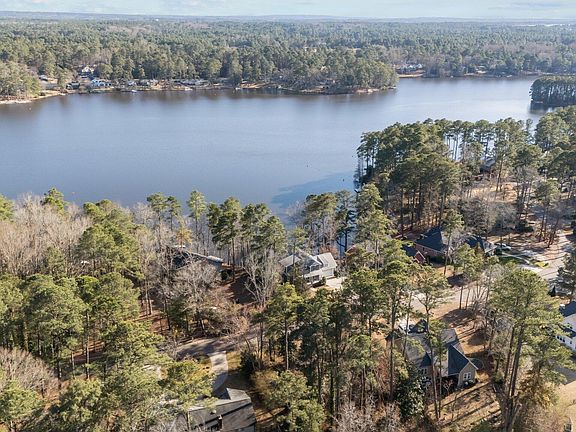 Enjoy breathtaking lake views from this stunning 3-bedroom, 2.5-bath custom home on Thagards Lake in the charming Village of Whispering Pines. From the moment you arrive, the inviting covered front porch welcomes you home. Inside, an open floor plan, custom architectural details, and panoramic water views create the perfect setting for entertaining or spending quality time with family.The first-floor master suite is a private oasis featuring a glamorous master bath with a luxurious tub, walk-in shower, heated flooring, dual vanities, and walk-in closets, offering the perfect blend of comfort and elegance. The tray ceiling adds a touch of sophistication, while French doors open to a large screened porch with fantastic lake views—the perfect setting to sip your morning coffee, enjoy the sounds of nature, and prepare for the day.The upgraded kitchen is designed for both function and style, featuring a central island, farmhouse sink, KitchenAid appliances, wall oven, full-size range, a conveniently located pantry, and amazing views of the lake. With high-end appliances and easy access to ingredients, cooking for family and guests will be both fun and effortless.Upstairs you will find two spacious bedrooms, full bath, large storage closet, and a flex space perfect for a home office or a gathering space.The unfinished walkout basement holds incredible potential, offering lake views, roughed-in plumbing for an additional bath, and a dedicated golf cart storage area with easy exterior access. Put your golf cart away and pass through the basement to the covered patio, where you can unwind with a cool drink while admiring the water or head down to your private dock for boating, fishing, or simply soaking in the beauty of the lake. Located in a vibrant community with golf courses, parks, jogging trails, and more, this home offers the ultimate ''staycation'' lifestyle. This home is a rare gem, offering an unparalleled blend of comfort, elegance, amenities, and stunning views!