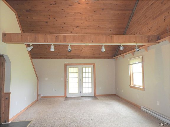 Welcome to this countryside paradise just minutes from famed Lake Ontario. This home is situated on 2.53 acres of lush land with beautiful views. The home has two bedrooms and a half bathroom on the first floor and one bedroom and a full bathroom on the second floor. The main living area offers vaulted ceilings with exposed beams and a light and bright open floor plan. The large garage will make a great workshop or extra storage.