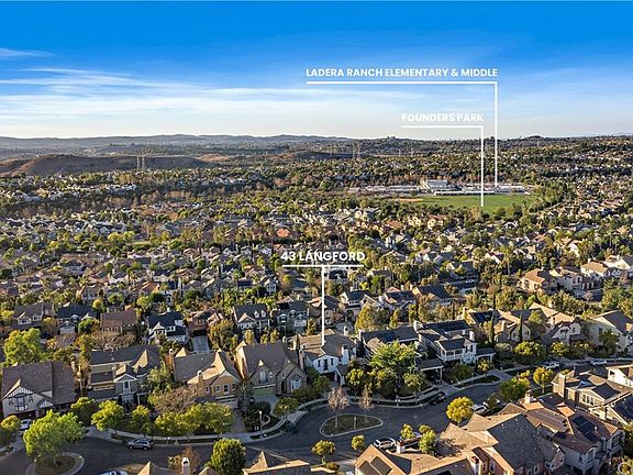 Enjoy the rare combination of a like-new home in a mature & established neighborhood, where this fully upgraded and remodeled Ladera Ranch residence is move-in ready. A tree-lined cul-de-sac street provides an idyllic setting for the home, which reveals impressive west-facing sunset & city-light views. Generous space for entertaining & preferred living is afforded in a two-story floorplan of approx. 3,575 s.f. that hosts 5 bedrooms, 3.5 baths, a fireplace-warmed Family room, a formal dining room w/ French doors, & a distinctive foyer with elegant staircase. On-trend finishes and fixtures are led by hardwood flooring, contemporary lighting & new paint inside and out. Bonus: Nutone whole house air filter and whole house water filter. French doors open the formal dining room to the outdoors, a Juliet balcony overlooks the front yard, & a built-in entertainment center w/ surround sound accentuates the family room. Completely new, the home's chef-caliber kitchen boasts quartz countertops, white cabinetry with glass uppers, a nook, built-in refrigerator and new appliances. An office lends versatility, & the master suite offers a view deck, dual walk-in closet's, & an all-new bath with separate sinks, a sit-down vanity, chic shower, & a soaking tub with picture window. Equally impressive, grounds showcase a 3-car garage, an entrance with fountain, & a view-enhanced backyard with loggia, a large built-in Lynx BBQ bar & outdoor kitchen, & a covered patio warmed by a custom fireplace.