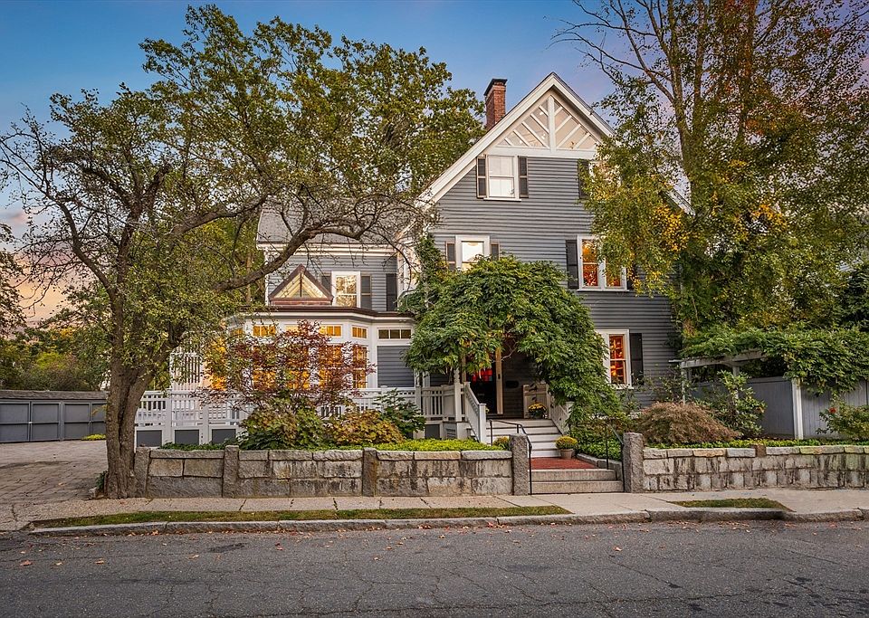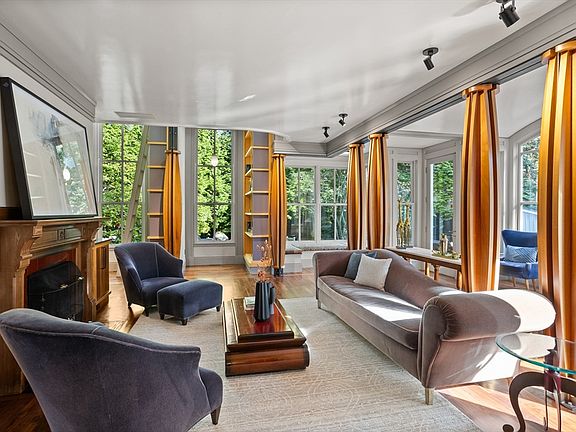 Built for transcendalist philosopher Francis Abbott, this re-imagined and expanded residence introduces a dynamic relationship between the indoors and outdoors. Achieving this goal, this house features generously proportioned high ceilings and tall windows, which are defined and supported by mahogany-clad blued steel columns. Custom-built bookcases with a rolling ladder surrounds the library. A private entrance leads to a first floor bedroom with a copper glass skylight and an en-suite bathroom. The kitchen offers Bubinga cabinetry, Sub-Zero, Gaggenau & Bosch appliances and a glorious sun-filled eating area. Delightful grand & intimate entertaining space w/ fireplaces, dramatic lighting, interior balconies and hidden doorways. Third floor media room w/custom wall unit and home office. Large fenced-in yard with tall trees, waterfalls, deck and patio area. The Larches is a close knit community that offers easy access to Harvard Sq. Boston and all routes. A 1 of 1 to the Cambridge market.
