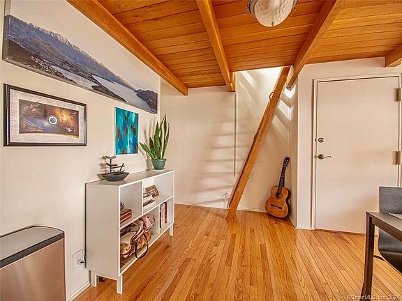 Cozy up at this condo in the Casagmo complex in Ridgefield, CT. This is a unique ranch-style unit featuring a carpeted loft with a stunning skylight. The living room features a cathedral ceiling, hardwood floors and looks out to a tranquil pond. Look up at another stunning skylight while you're cooking in your kitchen with cathedral ceilings, hardwood floors and new kitchen appliances. The bedroom features large windows as well as plenty of closet space. Located within walking distance of downtown Ridgefield. No outstanding assessments. There is easy access to the laundry room in the basement of the adjacent building. This complex is within walking distance to Main Street which features shopping, restaurants, schools, a library and a theater. Enjoy multiple amenities at the complex such as an in-ground swimming pool, tennis courts, a basketball court, a clubhouse and a gym. There is a designated parking spot (#453) and plenty of visitor parking. The HVAC system is new.