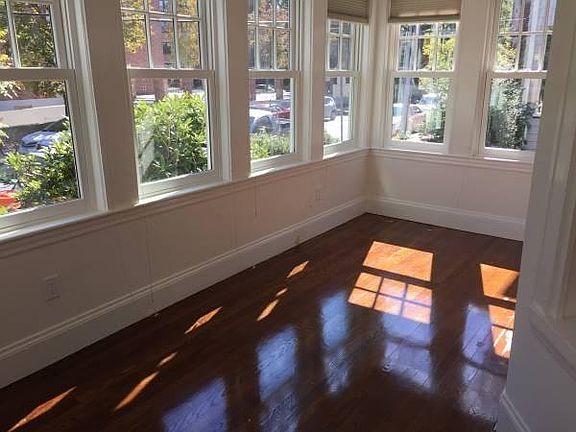 Available 4/3 Absolutely stunning. Centrally located to Harvard Square, This gem of an apartment is on the first floor of a two-family house. Gut renovated! Improvements include a new eat-in kitchen with granite counters, stainless steel appliances, newly refinished hardwood floors throughout, laundry in unit , additional sunroom/study in front of the house surrounded by windows, LR, DR with hutch, large bedroom with brand new en-suite bathroom with walk in shower with glass door, large outdoor deck overlooking beautifully landscaped back yard, garage parking & additional storage space in the finished basement. Heat, hot water included in rent. Central AC. Small dog maybe...no cats..