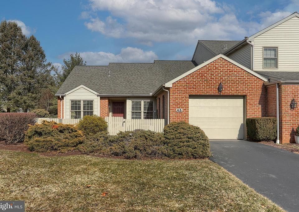 End-unit townhome in Cambridge Commons offers carefree, one-story living at its best! The fenced-in courtyard, perfect for gardening, welcomes you to the covered front door. The eat-in kitchen features cherry cabinets with pull-out shelves for easy access, pass-through to the dining room and a window seat that provides additional storage. The living room with vaulted ceiling and wood-burning fireplace is open to the dining room and is ideal for everyday living and special occasions. French doors lead to the large screened-in porch with views of one of the most private rear yards in the community. The primary bedroom includes a walk-in closet and a bathroom with jetted tub and new comfort-height toilet. The second bedroom includes two closets and built-in shelves and can easily serve as an office or study. The oversized garage has a newly-installed ramp for a step-free entrance. This home has been lovingly maintained by the original owner. Improvements over the years include a new roof in 2011, furnace in 2012, hot water heater in 2015, outdoor light fixtures in 2017 and KitchenAid dishwasher in 2021. Cambridge Commons is conveniently located to everything--minutes from Hershey Medical Center, all major routes and Hershey amenities and is steps away from the paved walking and biking path.