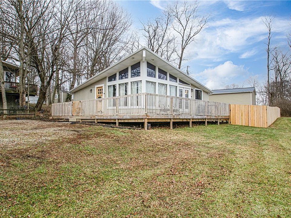 This adorable & unique house resides minutes from gorgeous and fun Lake Lakengren, is extremely cozy and easy to maintain! Beautiful open floor plan with floor to ceiling windows that surround the great room, and a ceiling height wood burning fireplace. You'll appreciate the lovely wrap around deck that surrounds the front of the house and leads to the backyard. The spacious backyard has been completely privacy fenced,('22) ready for winter bonfires! The friendly gated community is well maintained & the community offers many fun things to do, including concerts & all the amenities such as fishing, boating & swimming! So many updates!!! Roof '17, Deck '19. New Plumbing, Fence, HVAC, Tankless H2O Heater, Softener, Exterior Paint, updated Bathroom, New Front Doors and New windows: All in 2022! The fundamentals have been completed and ready for the new owners' personal touches.