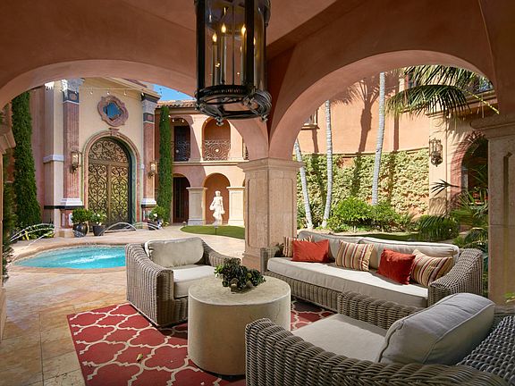SHORTER LEASE TERM AVAILABLE AT NEGOTIABLE PRICE. Crowning the southern tip of Newport Beach's exclusive guard-gated enclave of Linda Isle, 43 Linda Isle represents one of America's most admired, coveted and recognizable waterfront estates. A master class in refined architecture, exquisite craftsmanship and sumptuous living, the landmark mansion welcomes awe-inspiring Newport Harbor views from its appx. 134' of frontage, where private docks accommodate up to 160', 80', and 40', vessels for a total of 280' dock space. Enjoy mesmerizing sunset, Main Channel, and Turning Basin views from the residence's expansive waterfront terrace with stone balustrades, Venetian lanterns, and an outdoor dining, kitchen and barbeque area. Incredibly private grounds also feature a grand portico entry, a serene entry garden with dip pool, and stone dining pavilion with fireplace. Stunning architecture continues indoors, where a double-height foyer displays custom iron and glass entry doors, sweeping travertine staircase with hand-forged bronze and gilded railings, and a coved dome ceiling with a custom chandelier. The foyer sets the tone for sublime living and entertaining in vast reception rooms including a waterfront formal living room with sit-down harbor views, formal dining salon with bespoke chandelier and intricate millwork, and luxe bar served by a climate-controlled wine room. Artisans showcase their rare talents through the use of custom silk window coverings, custom-milled moldings, hand-crafted exotic stone, Venetian plaster and custom lighting fixtures. Guests and residents will enjoy the main level's inclusion of a secondary living room, a jewel-box powder room with red Venetian plaster, and an executive office with bayfront views, fine wood cabinetry, and art and trophy display niches. Chefs will enjoy an open-format kitchen with a garden-view breakfast room, a generous island, exotic slab marble countertops and backsplashes, a hammered stainless steel farmhouse sink, a spacious dining bar, large walk-in pantry, a butler's pantry, secondary catering kitchen, and pro-level Wolf, Sub-Zero and Bosch appliances. The primary suite occupies its own second-level harbor-view wing with a sitting room, wet bar, fireplace, a coffee bar, motorized window coverings, dual baths, and a versatile bonus room. Just moments to championship golf courses, upscale dining, high-end retail, and five-star resorts, this estate epitomizes convenient coastal living.