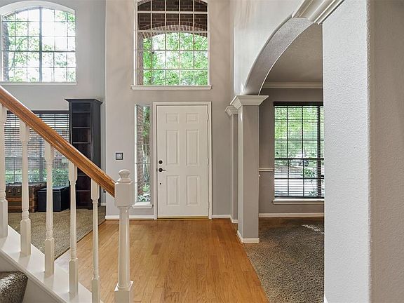 A LARGE YARD,GUNITE SWIMMING POOl WITH TOTAL PRIVACY! Backs up to a greenbelt and on a quiet cul de sac. Close to the park and Bush Elementary. This house has been freshly painted on the interior. Nice crown molding that gives the house the added touch of luxury. Pool has a rock waterfall, mood lighting and tropical landscaping. Plenty of room in the backyard for a trampoline, swing set or storage shed. Do not miss the Texas Attic off of the front bedroom upstairs. Nice eat in kitchen that overlooks the family room. AC replaced in 2017, new roof 2013. Flagstone extended paito with firepit.