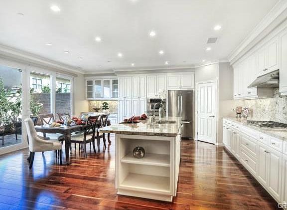 2 Years New! Stunning 4 Bedroom, 3 Bath Highly Upgraded home with a desirable Main Floor Bedroom and Open Floor Plan. Gorgeous Hardwood Floors greet you as you enter via the Foyer. The Open Floor Plan spreads before you revealing a Light and Bright Great room consisting of the Chefs Delight Kitchen boasting Stainless Appliances, Granite counters and Back Splash, a Walk in Pantry Huge Center Island with Seating, Glass Door Cabinets and loads of counter space, overlooking the Family Room with Romantic Fireplace, and built in Media Center, and the Dining Room with direct access to the Spacious Back Yard with Pergola. The Spacious Main Floor Bedroom is currently used as an office. The Garage features Epoxy Flooring for Easy Cleanup and Built in Storage Cabinets and a S/S refrigerator. The Master Suite Boasts Coffer Ceilings, Built in Closets, a Master Bath with Marble Floors and Tub Surround, Relaxing Soaking Tub, Dual Vanities and Cesar Stone counters. All 3 secondary bedrooms feature built ins in the closet.