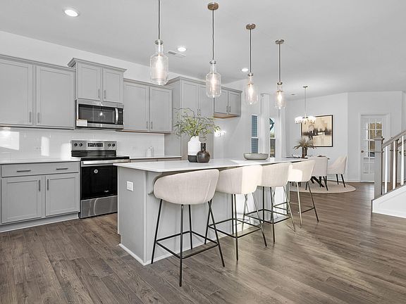 Discover the spacious 2,539 sq. ft. Lenox floorplan, featuring 4 bedrooms and 2.5 baths. The main level boasts a versatile study, separate dining room, and an expansive kitchen with a large island, quartz countertops, upgraded lighting, and stainless steel appliances. Home also features a covered screened rear porch, perfect for entertaining. Upstairs, enjoy the luxurious primary suite with a garden tub, water closet, and tiled walk-in shower in the ensuite. Three additional spacious bedrooms, a full bath, a loft space, and a convenient laundry room with a folding table complete the second floor. Plus, a 6x16 side bump-out in the garage provides extra storage. This home is a must-see!