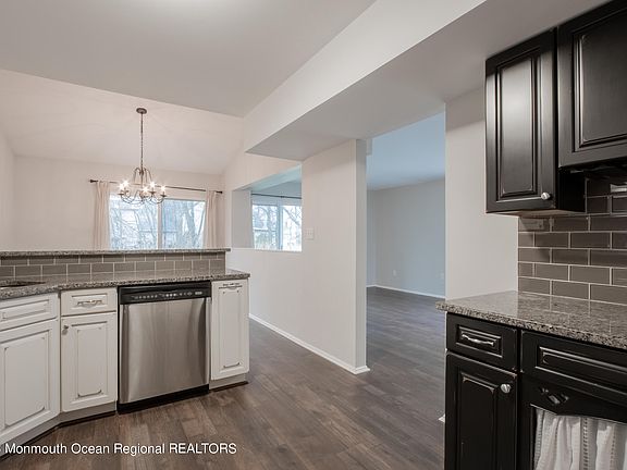 MOVE RIGHT IN! Nicely updated end unit with garage. Fantastic location in complex with tons of privacy. The kitchen was been updated with custom cabinetry & granite counters. Double sliding doors lead to patio for easy entertaining. The primary suite features updated bath and huge walk in closet. Lost area is perfect for home office. Second bedroom has full bath as well. Convenient location to parkway, rt 18 and just a few miles to the beach.