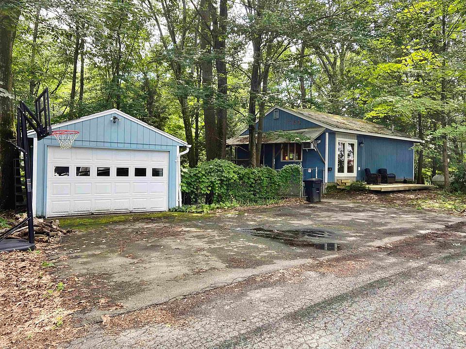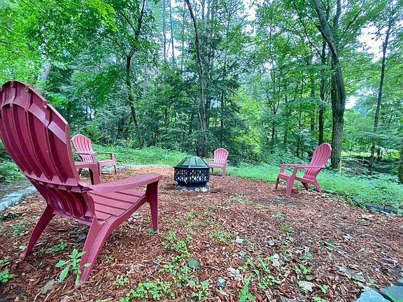 Showings start July 22nd and Open House July 22nd @ 10AM-1PM. This cozy/distinctive ranch sits on the edge of the woods with lots of upgrades! Large windows welcome the outdoors in. This 2 bedroom, 2 bathroom home offers an extra room that could be converted into a 3rd bedroom. New Engineered vinyl plank flooring all throughout the main level with Tongue and groove knotty pine ceiling to give this cute home a rustic feel. In the living room, you can cozy up next to the new wood-stove (that has a beautiful accent wall) during those chilly nights/days. A new glass sliding door that goes out to the newly built front deck. The kitchen has been remodeled with new cabinets, countertop, faucet, backsplash, pine shiplap and new stove & dishwasher. The main level ¾ bathroom offers a new vanity, mirror, light fixture and medicine cabinet. The lower level offers new carpet all throughout, a half bathroom, laundry room, utility room, 2 bedrooms and a bonus room that could be converted into a 3rd bedroom. Fenced-in area for your kids and/or pets. Garage has power and a new garage door installed in 2021. Relax in the hot tub that is also located in the garage or hang out with friends and family next to the fire-pit area.