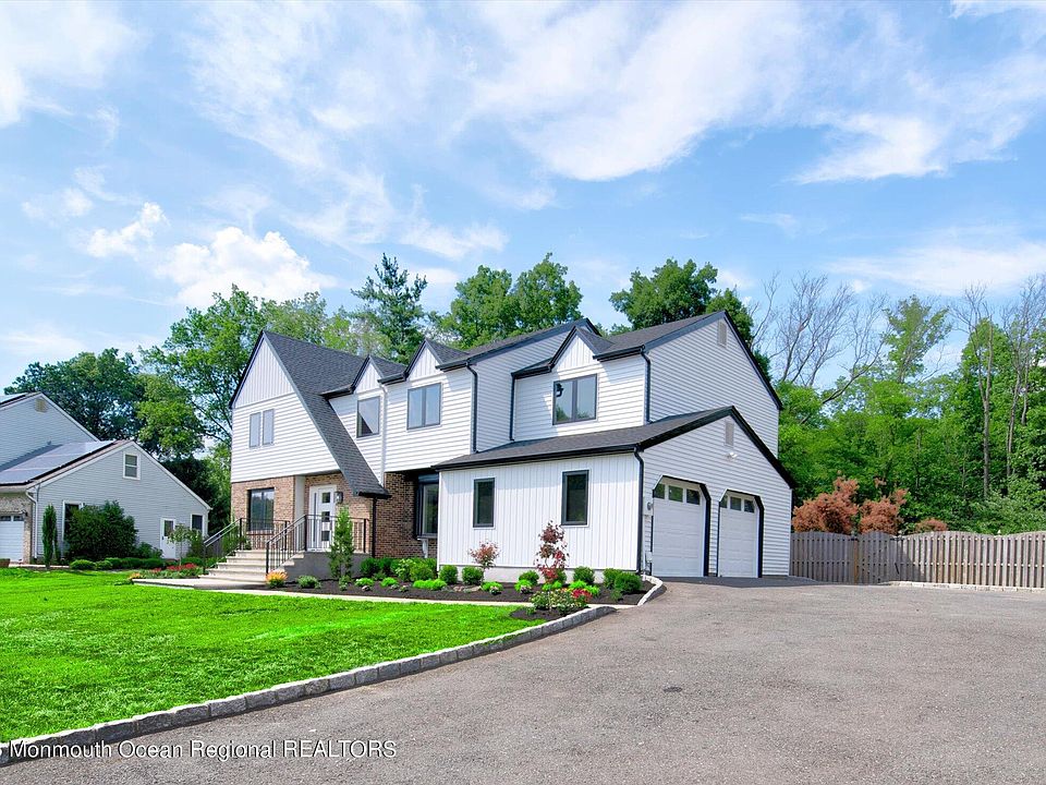Stunning makeover on this 4/5 BR Colonial in the heart of Marlboro twp. Features inc 2 story entry w/open staircase w/wrought Iron railing. Formal DR w/decorative molding. New gourmet kitchen w/white shaker cabinetry, subway tile back splash, quartz counters & SS app. Step down formal LR w/recessed lighting & crown molding. Step down FR open to kitchen w/wood burning FP, Full brick wall surround. Den/5th BR w/private entrance. Entire 1st level boasts gleaming HW flooring. MBR Suite w/sitting room, WI closet w/built ins & HW flooring. Spa like MBA w/free standing tub & oversized frameless shower. Spacious bedrooms. Full Fin bsmt w/powder rm & built in bar. Paradise back yard w/new multi level deck, free form concrete pool w/spa. Entire house painted in designer colors. HWBB heat. New Roof. Nothing to do but unpack. Must see in person to appreciate!