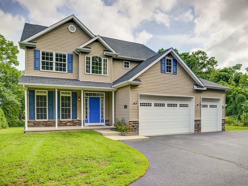 Private lot, but not secluded!! At the bottom of the long driveway, you will find a beautiful custom Center Hall Colonial, w heated 3 car garage front porch. Inside the hand scraped wood floors will lead you into the custom kitchen with Quartz countertops, Fieldstone 42 cabinets, S/L Steel appliances center island. Open to the large family room, there will be plenty of room for everyone! French doors head out to a tremendous yard with swingset, garden, large patio custom bar area. Full finished walk out basement w/ high ceilings brings home to over 3200sqft. Custom speakers throughout, 3rd bay garage for car enthusiasts, Timberline roof, gas fireplace, too many upgrades to mention! Upstairs laundry bedroom master suite keeps the family close.Seconds to train station for commuters