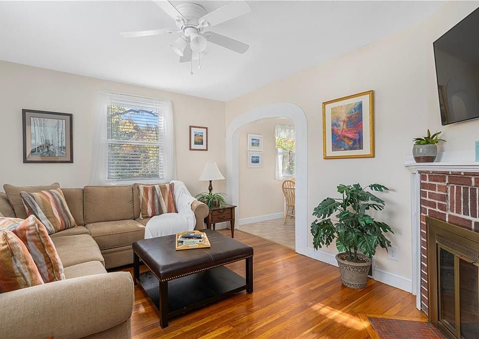 Adorable and updated 2-3 bed ranch privately located at the end of the road abutting town owned land. This adorable home is flooded with natural light, wood burning fireplace, hardwood floors, granite counter tops with stainless steel appliances, vinyl windows, new (2019) chimney liner and oil burner, oil tank and portico. The lower level also has 2 finished rooms with large windows. The unfinished area houses plenty of shelving and storage space. Fenced yard with 12 x 12 back deck and small patio area. Convenient location close to highway, shopping, restaurants and Wickford Village.