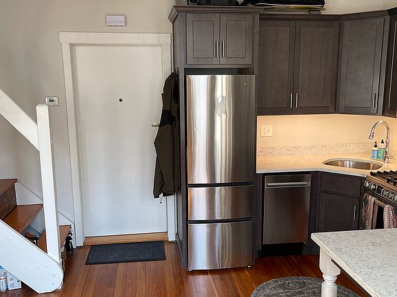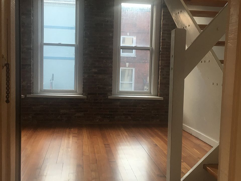 Sunny Loft in the heart of historic Downtown Portsmouth. Enjoy walking to everything! Only steps away from Market Square and all of the restaurants and shopping. All wood floors, New kitchen, stainless w/dishwasher, gas range, microwave. Granite counters. 2 floors: Kitchen living room 1st floor, bedroom bathroom 2nd floor. Brick walls and high ceilings. One Year lease