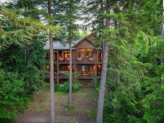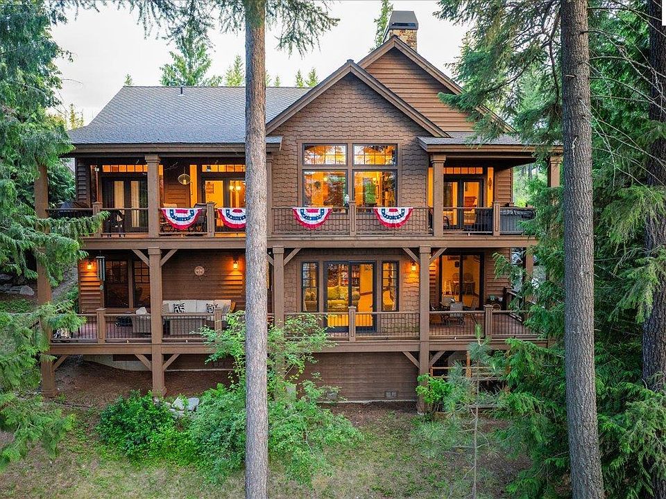 The wind whispers in the forest, the river wrangles with fish, the sky soars on eagle flights …This cedar home has beautiful views of the Pend Oreille River, enjoyed from an inviting great room featuring a wooden vaulted ceiling and solid stone fireplace. The primary bedroom suite includes views of the river, a gas fireplace and French doors leading to a hot tub. The second suite on the main floor also has French doors opening to the upper deck with river views. Main living area wood flooring, as well as solid wood cabinets, doors, and trim, give this luxury home warmth and style. The 5 spacious bedrooms and 3.5 elegant bathrooms work well for both everyday living and entertaining loved ones. Take a few steps down the trail behind the house to relax at the beach, or enjoy the pickleball courts around the corner, or simply stroll along the 3 miles of walking trails. Located just 20 minutes from Sandpoint and 45 minutes to Schweitzer Mountain Resort, this wonderful home is close enough for easy living while finding the wonders of nature at your doorstep.