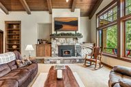 Gas fireplaceSolid stone fireplaceHot tubWooden vaulted ceilingFrench doorsTrail behind the housePrimary bedroom suite