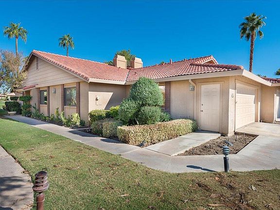 Chaparral Country Club Home, offered remodeled & furnished, northwest facing patio showcasing the course's Hole 12, a tranquil par 3 with water fountain across pond to left-side fairway! Simply-stunning-sunsets topping across the west facing mountains. Coveted island location without a through street, ensuring privacy with ample guest parking. Ease of access to community pool/spa, 1 of countless, just a putt's distance away from your front door. Upon approach, relish in the space of private driveway with direct access 2 car garage plus dedicated walkway. Upon entry, your attention will turn to a proper resort floorplan with formal dining, wet bar, great room, & kitchen with breakfast bar. Upgrades include newer Anderson windows, LED lighting throughout, 2 private patio water fountains. The views of this home cannot be overstated & embellish all angles from interior. Beaming bright natural light, tall pitched ceiling for space, kitchen having newer stainless steel appliances provide true charm. Back patio is covered with ample seating, fully block walled with small fence, great for dogs and/or grandkids. Tile throughout, bedrooms have supple carpet. Mirrored closet doors along with built-ins for storage. Coveted central Coachella Valley location. Nearby to The El Paseo Shopping District, The Shops at Palm Desert, & upcoming Acrisure Arena. Enjoy variety in your golf game as residents can play Desert Willow at discounted rates too. Make this masterpiece your next home today!